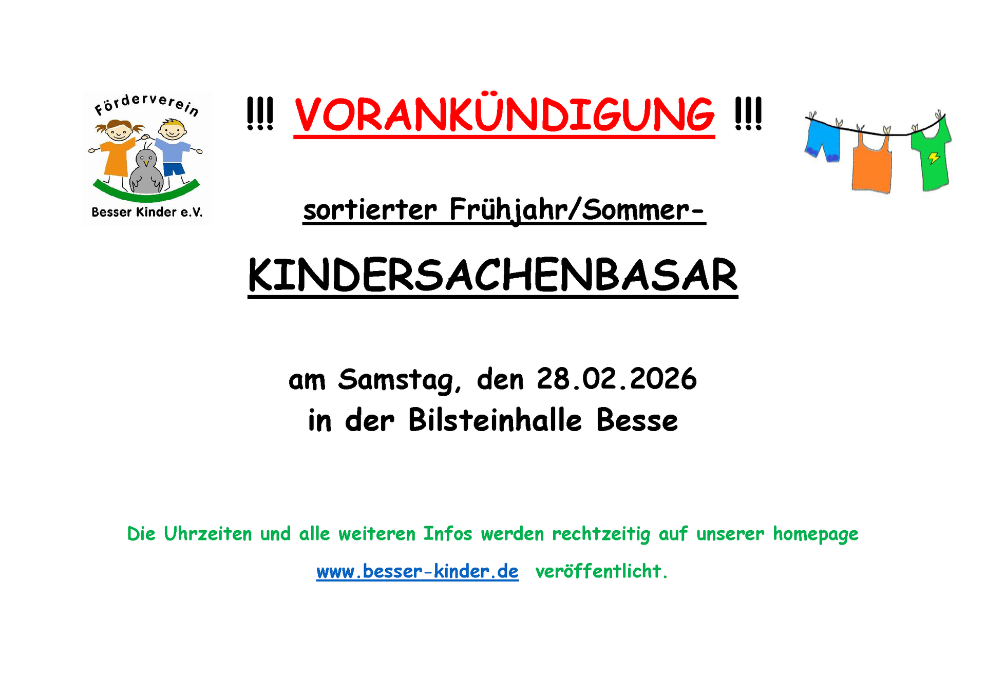 Termin Frühjahrsbasar: